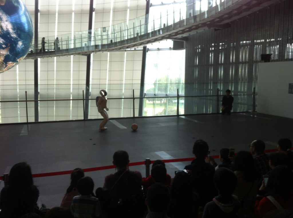 About a week later, on our last full day in Tokyo, we visited the National Museum of Emerging Science (Miraikan), where we saw ASMO, a semi-humanoid robot from Honda. Unlike the Pepper robot parked in the hotel lobby, ASMO was ambulatory, kicking a soccer ball and thus vowing the audience.