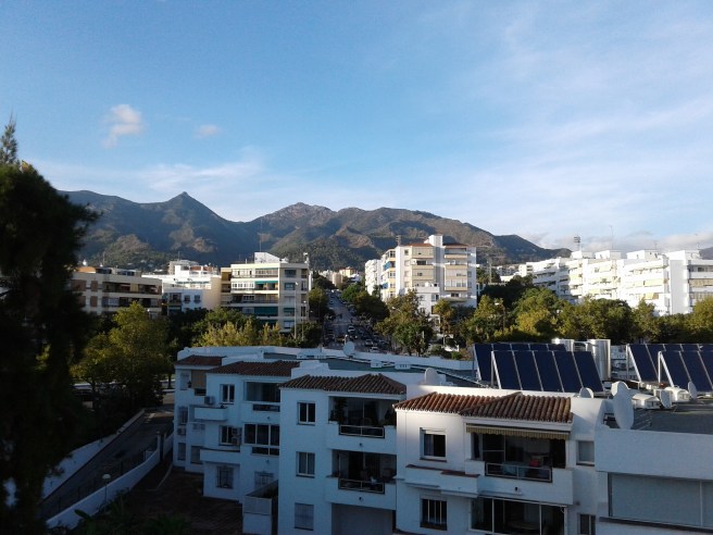 Costa del Sol is still pleasant in October. The crowds are gone, the Mediterranean is still warm, and the days are long enough, although, to my surprise, it does not get light until after eight in the morning. This time, Marbella was our base, an apartment rental on the beach, and behind it, low hills and further back the Sierra Blanca range. We arrived in Marbella at night, the air warm and heavy, in sharp contrast to Granada, not more than a few hours away, but at not inconsiderable elevation.