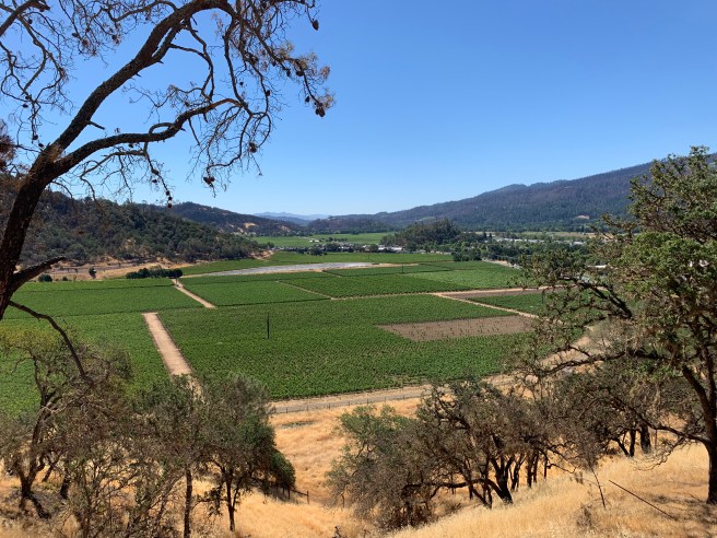 - Go on a hike. The trailhead for the Oat Hill Mine Trail is 0.3 miles from the California Motor Lodge, just past the intersection of Highway 29 and the Silverado Trail. The trail is an old stagecoach route, 8.3 miles each way, a steady ascent above the valley floor up and into the Vaca mountains. I hiked three miles in total, as it was getting warm and the noon checkout time was quickly approaching. Bring plenty of water and start early, especially during the summer. Also, it is super dry; in fact, last August the Glass fire nearly burned down Calistoga and you can see how far it got as you hike up the mountain and pass a cathedral of charred madrones. Despite the fires, new vegetation is beginning to grow, but with the tinder box conditions, extreme care is advised.