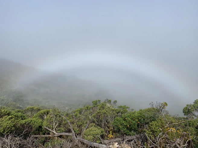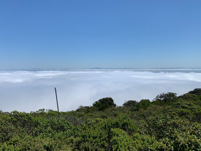 - Notes and Observations: Go early. The parking lot was filling up at 9:30am and full when we returned, at 12:30pm. This is a typical coastal trail, open, with a few, mainly cypress, trees; chaparral; and some poison oak, but usually away from the trail. Be sure to wear good hiking shoes. A few hikers, with tennis shoes, were having issues on the way down. Good, steady climb to the peak, with a few flats, to catch your breath. Not nearly as challenging as Mount Diablo, which is twice the height of Montara Mountain. Fabulous views at the top, of Mount Tam to the north and Mount Diablo to the east, above an ocean of fog. Last, but not least, Grey Whale Cove State Beach is located right across Highway 1, down a relatively low bluff. Feel free to enjoy lunch there, or on the trail, but do not swim (hint: sharks): https://abc7news.com/great-white-shark-attack-grey-whale-cove-state-beach-surfer/10834459/