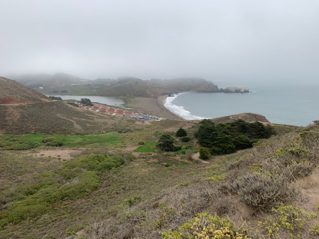 - Notes and Observations: Go early. The parking lot and Coastal Trail were mostly empty at 8am. Fog was pea soup dense, but, with the cool, steady breeze, contributed to perfect hiking conditions. The trail climbs almost immediately before settling into a seemingly unending combination of ups and downs, before passing Pirate’s Cove, descending and intersecting the Tennessee Valley Trail, and then, transitioning from a fire road, single tracks up for about 1.5 miles. Keep working the hill. This is the best part of the Coastal Trail, a fabulous, sustained climb if there was one. At the top, feel free to continue another 950 feet to Hill 88, an abandoned battery. Turn around, and continue down to Rodeo Beach, but be sure to stop at Battery Townsley (1938). Stop for lunch at Rodeo Beach. With the fog lifting and the sun peeking out during the hike back, the vistas were almost entirely different, timeless, primordial, empowering, integrated, whole. Of course, it was one hike, but it felt like two. After countless ups and downs, Muir Beach was finally within sight, one final descent before returning to the Muir Beach Parking Lot, grabbing a towel, and chilling very tired legs in the perfectly frigid Pacific. A better end to a very long hike (11.7 miles per All Trails and 14.0 miles after adding in various detours) could not be imagined, complemented only by the excellent company of our intrepid hiking crew.