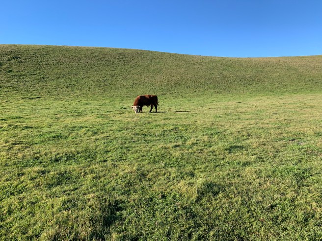 - Notes and Observations: Leave early. Parking is free on Sundays. The climb to the peak is more gradual from the Ohlone College Parking Lot. Bring layers, as it gets hot quickly, especially if you keep a brisk pace (3 miles per hour). Check the soles of your hiking shoes. You will need good traction on the way up and even more so on the way down, especially after the ridge on the southern edge of the hike. There are a few hiking options: 5.8, 7.3, and 10.6 miles. If you have time, consider the 10.6 option. There are two monster ascents; well, the first ascent to the peak is more than manageable, while the second ascent, from the Stanford Avenue Staging Area is a monster, 1500 feet in less than two miles, a grind (https://johnpavolotsky.com/2022/01/20/the-daily-grind/), a metaphor for some aspects of life, glute-buster, straight up, perhaps a switchback or two, mercifully a few flats, and then the final descent, back to the parking lot. The peak (2,517 feet) is a bit of a zoo, a long line of hikers waiting to take their pictures at the famous pole, flashbacks to Disneyland, without the fast pass, of course. Frankly, the best part of the trail, besides the climb up from the Ohlone College parking lot, is the hike along the ridge, south, to the intersection of the Peak Trail and the Horse Heaven Trail. Few hikers, views of Mount Hamilton to the south, the Santa Cruz Mountains to the west, Mount Tam, an island above the clouds, to the northwest, and Mount Diablo to the northeast. No Sierra Nevada viewings, due to the haze to the east (no rain in almost a month – ugh). As mentioned, the descent to the Stanford Avenue Staging Area is super steep. Recover for a few minutes at the picnic tables, then proceed to the second ascent, described above. Two hikes for the price of one, perhaps. It appears that Mission Peak was named after Mission San Jose (1797), in present day Fremont, California. The Ohlone Indians lived on these lands and in time cattle grazed what soon become a sprawling rancheria. You will still see cattle here, sometimes a few feet from the trail, focused intently on grazing on the (still) green grass. Wild turkeys could be seen as well, farther from the trail. A hawk or two soared above us. Perfectly sunny day, as evident from the pictures, with our monthly hike consummated with ice-cold beverages and fabulous local kebab (see details above). Last, but not least, dogs and bicycles are generally permitted throughout this park, but be sure to check the map before your hike or ride. Comments welcomed.