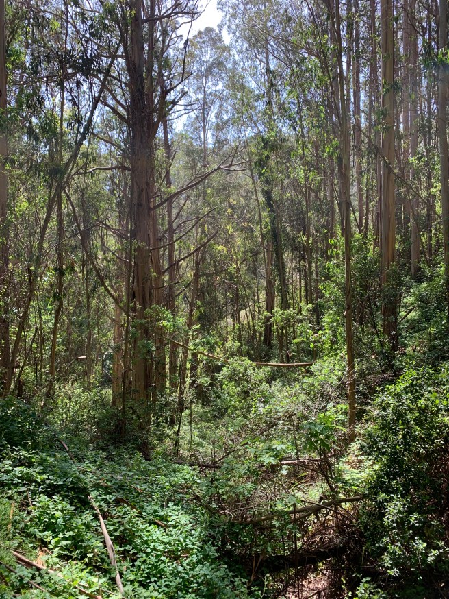 - Notes and Observations: This is a quick and easy one, perfect after a tough week. Gentle climb through eucalyptus groves before opening up to views of Pacifica below, the Pacific (of course), and Mount Tamalpais well to the north. Coastal weather is almost always a mixed bag, except for our Indian Summers, in September and October. April can be quite nice, and today was perfect. Cool, practically no wind, sunny, digital detox in action, minus checking my phone from time to time to ensure that we were on course. 9 person crew this time. Lively conversation, as always. Quick stop at North Peak for the obligatory (and necessary, mind you) group photo, and snack, before beginning our descent to the parking lot, ice cold beverages, and a fabulous lunch at Moss Beach Distillery, fewer than five miles away, where we enjoyed fish & chips (on par with New England’s (and England’s) finest), fish tacos, and other delicacies of the sea. Be sure to reserve a table. The outdoor patio is heavenly, and the view from the indoor dining room is almost as sublime. I hiked Montara Mountain last June, from Whale Cove Parking Lot. Same distance and terminus (North Peak), but virtually no shade and a much steeper ascent (and descent). Parking is also easier on the San Pedro Valley CP side, and you can enjoy a picnic and/or barbeque if you choose not to dine elsewhere. No mountain lions sighted, this being a risk for many hikes on the Peninsula and elsewhere in the San Francisco Bay Area. Plenty of poison oak; just stay on the trail, keep your hands to yourself, and you’ll be fine. No dogs. Sorry. There are many hidden treasures in the San Francisco Bay Area; this might be one of the better ones. Hike on.