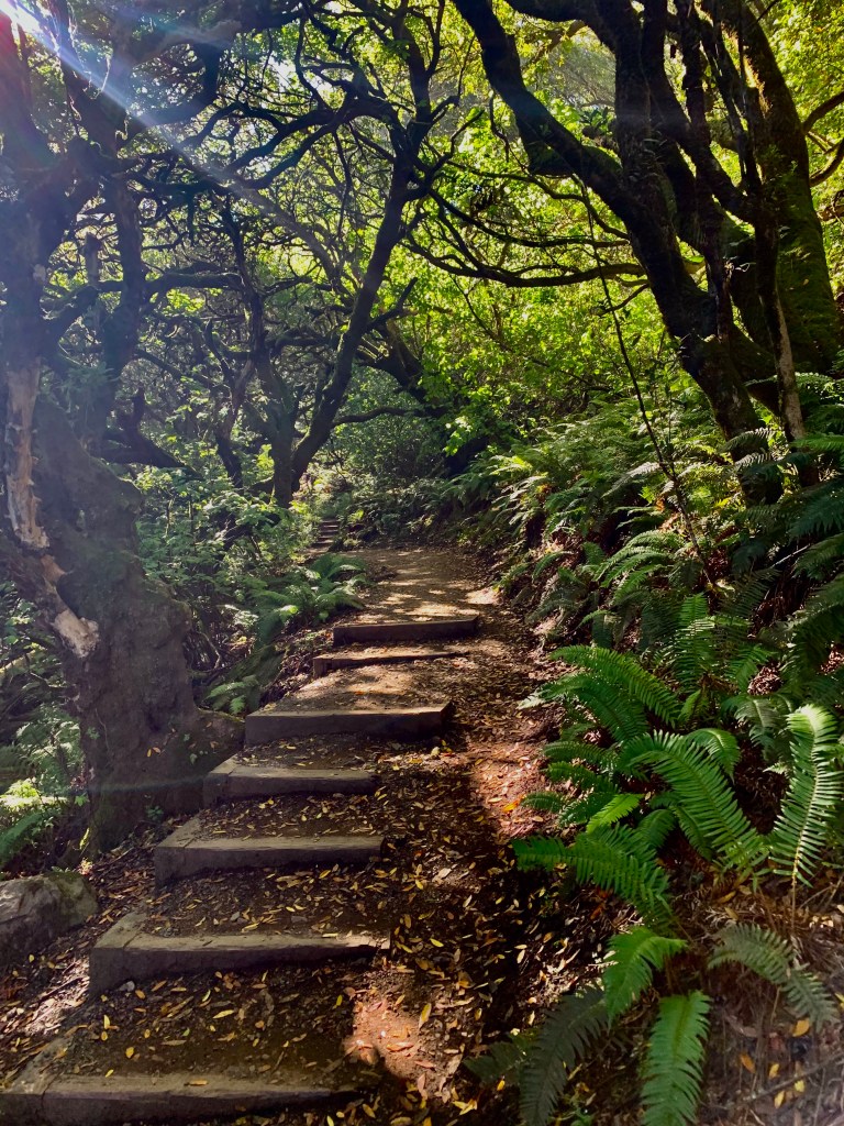 The Dipsea Trail is extremely well marked, in sharp contrast to many of the trails on my hikes. No backtracking. No second guessing. No need to consult the All Trails App. Just follow the signs and common sense. The hike is uphill both ways. Just look at the map. The perfect antidote to being in a conference room and glued to my computer for the past 3 weeks. Lots of steps, although not as intimidating as the 688 steps when you pick up the trail in Mill Valley, about two miles past Muir Woods, and about seven miles from Stinson Beach. Different terrain and scenery every mile (just look at the photos below); if you’re not happy with your boss, just wait for another 6-12 months (when, after the reorg, you’ll get a new one). Same concept here. Just wait (hike).