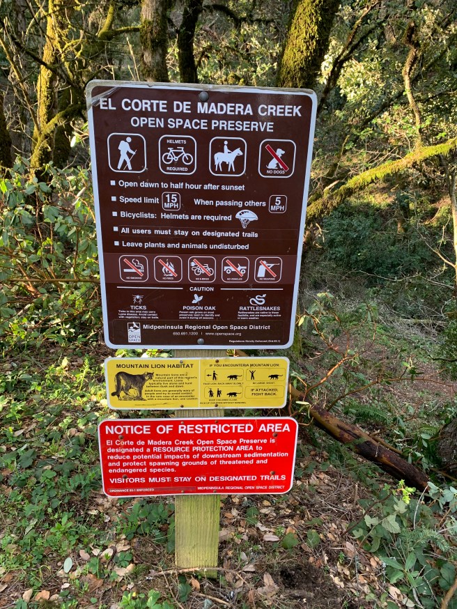 Here are the hike details: https://www.alltrails.com/trail/us/california/el-corte-de-madera-creek-trail-fir-trail-and-gordon-mill-trail-loop. 10 miles, 2,300 feet elevation gain, per All Trails. Our adventure included a slight detour, adding 1.5 miles and another 700 feet to the total. 5 hours with a few snack and water breaks. Not a bad way to spend a Saturday morning.