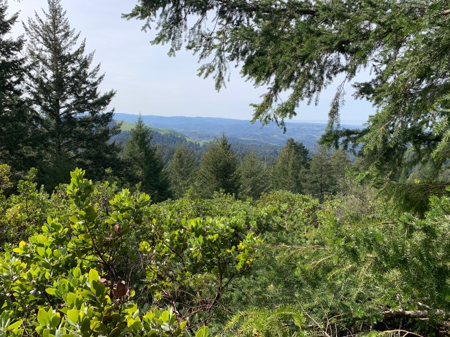 One of the many pleasures of these hikes, besides the exercise, disconnecting for a few hours, and resetting, are the conversations. Many of us are around 50 or older. When you’re young, you try to avoid the uphills. When you’re older, you try to avoid the downhills. Sometimes knees cooperate. Other times, they do not. We discuss the weather (of course), SVB, our favorite hikes, travel, working to live or living to work, domestic politics, Brexit, the sophistication and worldliness of the average European (if there is one) compared to the average American (same), why on the Giant Salamander Trail we could only find a banana slug, and so on. The conversation is free flowing, effortless, until my navigation skills falter, ever so slightly, and we cross over to the Manzanita Trail, for the aforementioned detour. First, in my defense, El Corte de Madera is a maze, 3000 acres of myriad trails. Second, and more important, Manzanita Trail is breathtaking, narrow, well-maintained, with 10-foot manzanita trees on both sides, a new world, after 10 miles of hiking along the ridge line, down to a verdant gulch, and then back up, past redwood, fir, and bay trees, among others. Before long, we find the Fir Trail, aptly named as well, and return to the Vista Point, to enjoy the views of the Bay and to conclude our hike.