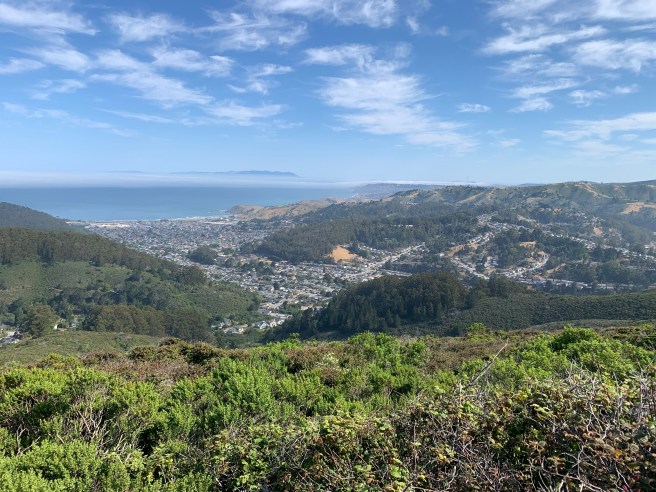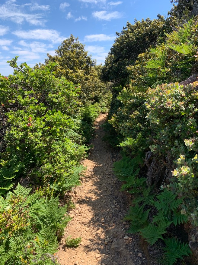 - 7 mile out-and-back, 1,900 feet of elevation gain, warm and humid, a veritable greenhouse, at the bottom and solid heat at the top, interrupted by the occasional (and mercifully cool) ocean breeze.