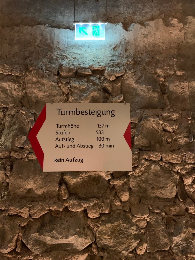 - Turmbesteigung (Tower Ascent). 157 meters, 533 steps, a 360 degree view of Cologne, pure joy to any serious hiker. Looking back, I should have done this twice, with a weighted backpack!