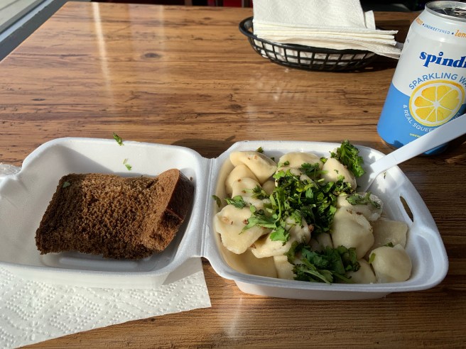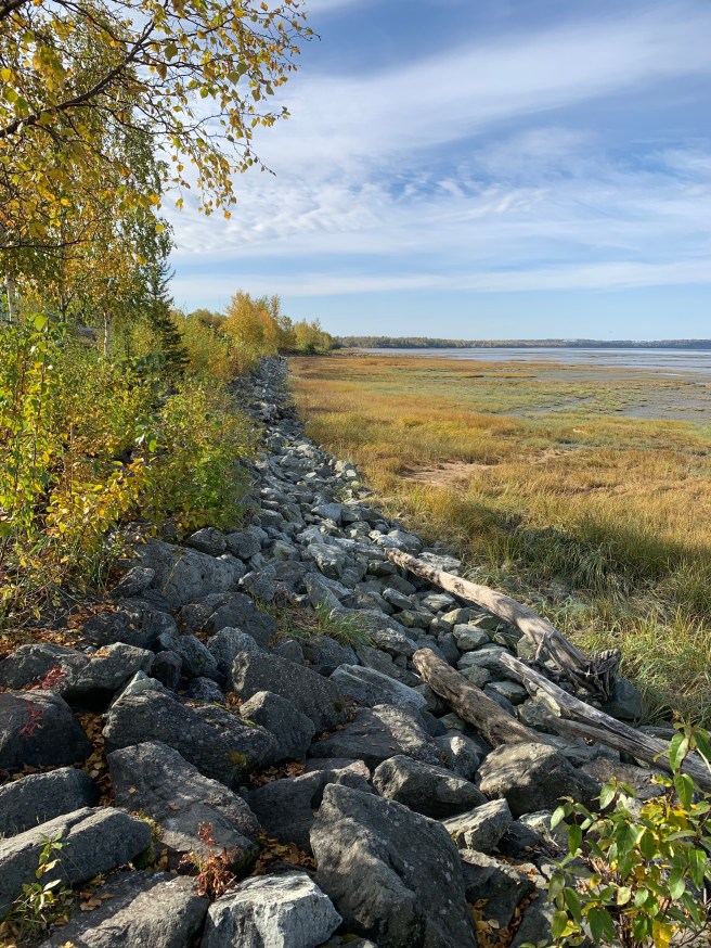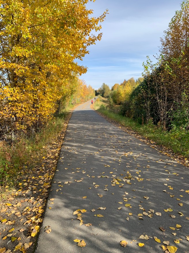 The Coastal Trail is eleven miles long, from downtown Anchorage to Kincaid Park. No bears sighted. Same for moose, although there was a brief encounter elsewhere, as evidenced below. Late September, perfect weather, fifty degrees, no wind, clear skies, in sharp contrast to the dreary, and particularly wet, summer, water as far as the eye can see, snow covered peaks across the water, and behind you as well, a setting as unreal as any I have experienced. Maybe Norway (https://johnpavolotsky.com/2021/08/05/one-week-in-norway/), but on a bigger and grander scale. Plus, birch trees, in their golden splendor, reminding me of where I was born. Pelmeni, potato, my favorite filling, helped the cause. No sour cream, sorry.