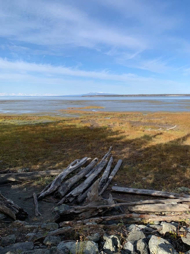 It seems that a trail always finds me (or perhaps that I always find a trail). This one was flat, flat, flat, unlike our last one, Purisima Creek Redwoods Open Space Preserve (https://johnpavolotsky.com/2023/09/10/purisima-septiembre-2023/). Consider this Anchorage’s version of the San Francisco Bay Trail (https://johnpavolotsky.com/2023/01/02/the-san-francisco-bay-trail/), but with Chugatch State Park to the east, Cook Inlet, and beyond that, the Kenai Peninsula to the southwest, and the Alaska Range to the northwest. Yes, Flattop Mountain, a short Uber ride from my hotel, would have been more challenging, but with 48 hours in Anchorage, I simply did not have the time. Unfinished business, for an avid hiker.