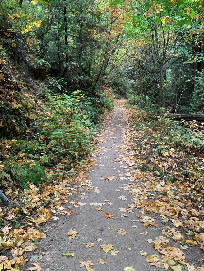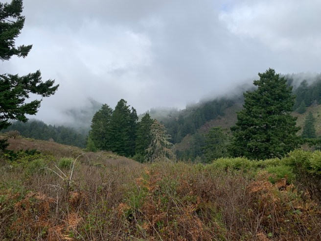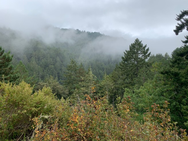We hiked this last September, and I’m quite sure that this fallen tree, on Craig Britton Trail, was not there. Besides that, the hike, a 10-mile loop, was as I remembered it, one of the best intermediate hikes in the San Francisco Bay Area. Park in the North Ridge lot, off Skyline, hike down North Ridge and Whittemore Gulch Trails, to Purisima Creek Trail, up Craig Britton, to Harkins Ridge, and back to the North Ridge lot. Perfect conditions, nice and relatively cool after last weekend’s heat wave, good company and conversation with old and new friends – who can ask for anything more? Next month? Montara Mountain, details to follow. Enjoy the pictures below, and happy trails.